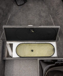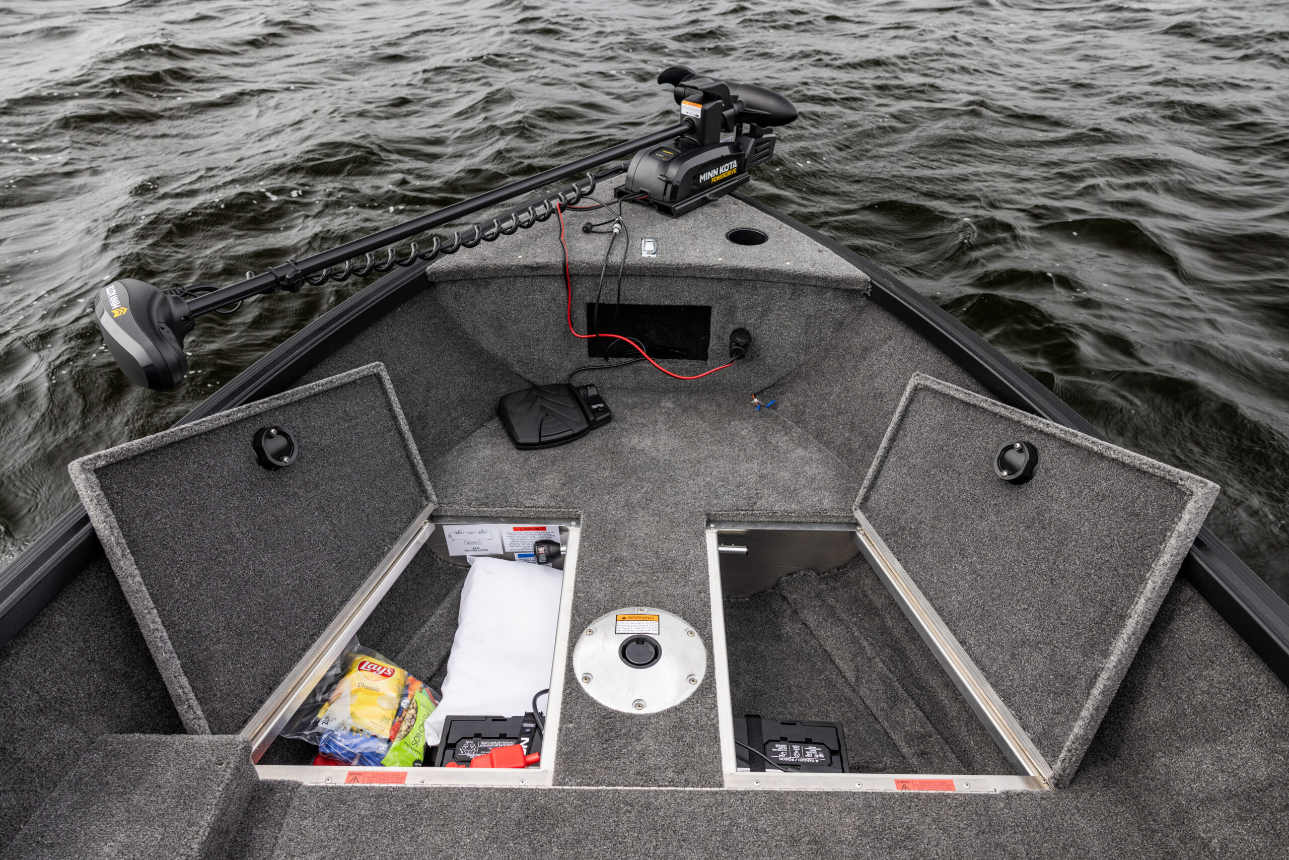När det gäller stuvutrymmen är akter och för-utrymmena exakt lika på båda modellerna. Det är stuvfackena inne i båten på vardera sida som blivit uttökade på 165:an. Babordsidans fack har nu plats för spön upp till åtta fot istället för sju fot på 145:an. Det lilla stuvfacket på styrbordsidan har väl i alla fall blivit minst dubbelt så stort och det var välbehövligt. Nu blir det mycket lättare att hålla ordning på alla måsteprylar i ”handskfacket”.